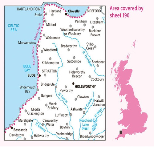 Plaatsen op deze kaart: Bude, Clovelly, Holsworthy, Stratton, Boscastle, Bideford, Stoke, Hartland, Milford, Parkham, Lillteham, Woolfardisworthy (Woolsery), Buckland Brewer, Stibb Cross, Bradworthy, Welcombe, Morwenstow, Woodford, Kilkhampton, Sutcombe, Shebbear, Cookbury, Holsworthy Beacon, Bridgerule, Pyworthy, Clawton, Bangors, Halwill Junction, Ashwater, Luffincott, Boyton, Yeolmbridge, Broadwoodwidger, Canworthy Water, Hallworthy, Davidstow, Marshgate, Middle Crackington, Week St. Mary, Widemouth Bay and Bangors.