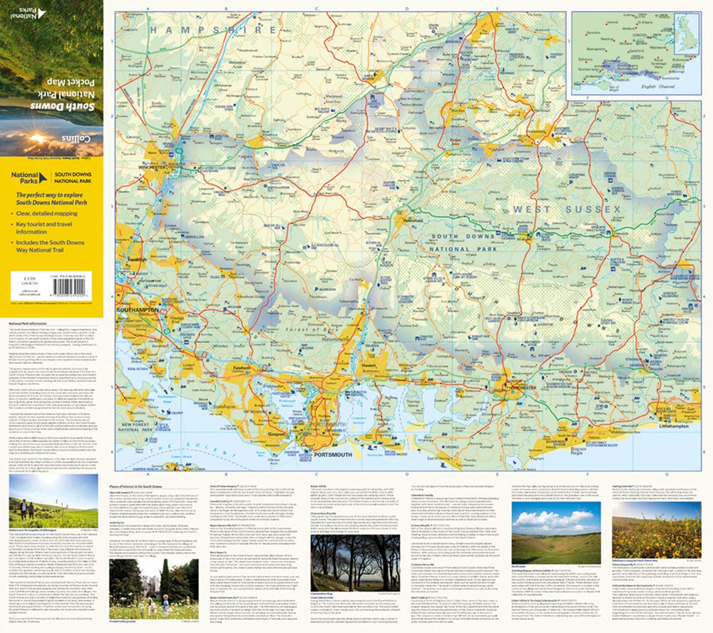 Handy little full colour map of South Downs National Park.Detailed mapping and visitor information to the National Park along with a selection of photographs. Map at a scale of 1:125 000 (1cm to 1.25km, 2.0 miles to 1 inch).This small map gives a great overview of the South Downs National Park, and is the perfect companion for exploring this beautiful area of South East England.• Clear, detailed mapping• Key park, tourist and travel information• Ideal for planning visits to the National Park• Index to help locate and plan your trip· Information on the South Downs Way, Miles Without Stiles routes, the Seven Sisters and other places of interest