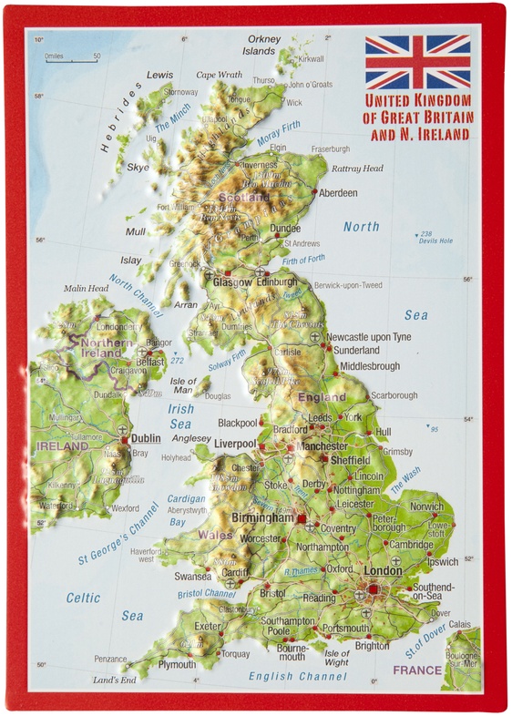 Ansichtkaart Groot-Brittannië met reliëf | GeoRelief (4280000664754)