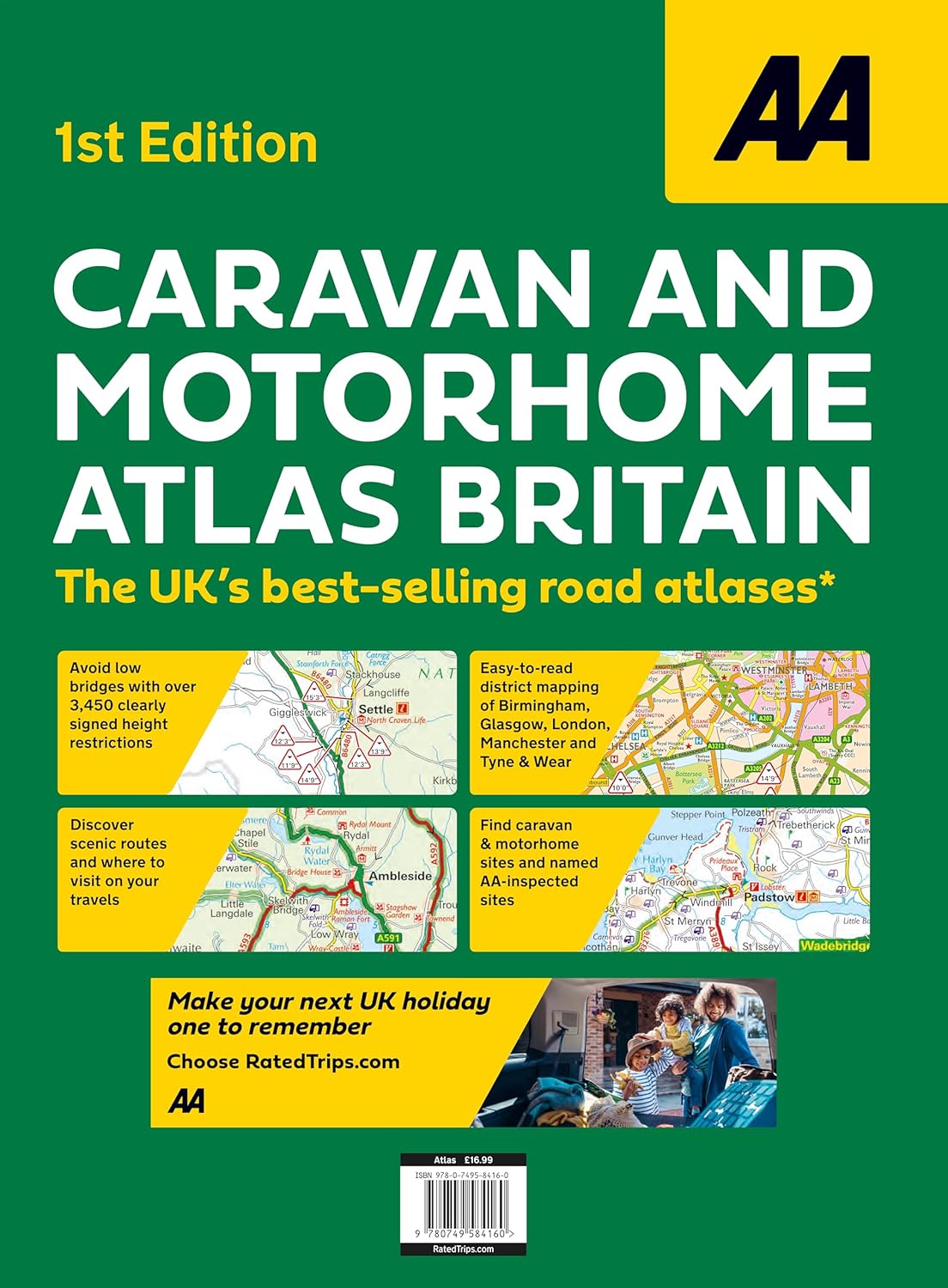 New for 2024, this A3 atlas provides information of particular importance to caravan and motorhome owners and includes named AA-inspected caravan parks and also non-AA parks, plus low bridge heights. Roads less than 4 metres wide are distinguished, as well as road tunnels, toll roads, service areas, steep gradients, level crossings and low emission zones. A special feature for caravanners is a listing of the AA-inspected sites with their ratings and 10 individual touring routes ranging from 96–480 miles with accompanying map and information on places of interest along the route. The giant scale mapping makes it easy to read and each page has been titled with its geographical location so you can turn to the page you need more easily. The atlas also includes a clear route planner map, quick reference distance chart and an explanatory list of restricted motorway junctions. Additionally there are large scale district maps of London, Birmingham, Glasgow, Manchester and Tyne & Wear. Over 8,700 places of interest shown on the mapping include National Trust and English Heritage sites, National Parks and tourist sites with the addition of scenic routes.