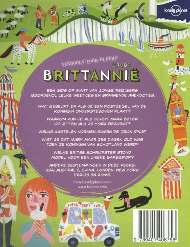 Alles wat je altijd al wilde weten - Lonely Planet-gids speciaal voor jonge reizigers Na de succesvolle stadsgidsen nu ook landengidsen in de reeks ‘Verboden voor ouders’. Een perfecte mix van leuke weetjes en spannende anekdotes Een hippe, aantrekkelijke vormgeving boordevol kleurenfoto's en illustraties In enkele maanden tijd zijn er meer dan 10.000 exemplaren van de stadsgidsen verkocht