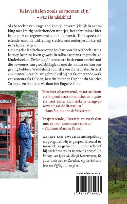 Gerrit Jan Zwiers Te hooi en te gras is een reisverhaal, waarin verhalen over het Engelse landschap verweven worden met beschouwingen over het Engelse kinderboek. Als bezoeker van Engeland kom je onvermijdelijk in aanraking met keurig onderhouden tuintjes, het schuimloze bier in de pub en tegenwoordig ook de brexit. Toch speelt de ellende rond de uittreding slechts een ondergeschikte rol in Te hooi en te gras. Het Engelse landschap vormt het hart van dit reisboek. Dat is keer op keer tot leven gewekt in talloze romans en prachtige kinderboeken. Zwier is geïnteresseerd in de emotionele band die bewoners van good old England met de natuur en hun omgeving hebben. Wandelend door streken als het Lake District en Cornwall staat hij uitgebreid stil bij het fascinerende werk van auteurs als Tolkien, Beatrix Potter en Daphne du Maurier. Zo lopen en bladeren we door het Engelse land.