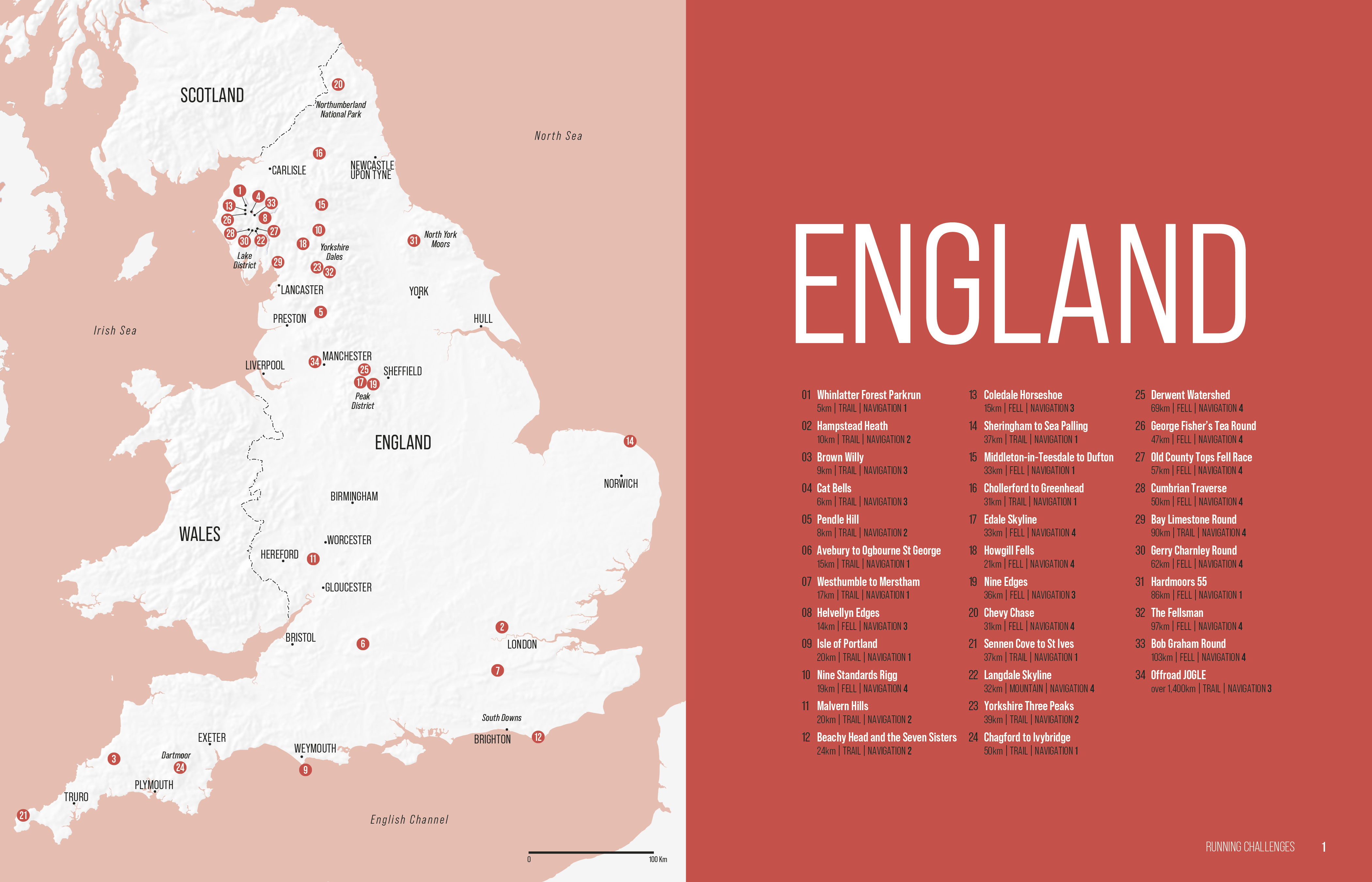 Running Challenges by Keri Wallace showcases 100 of the best runs across Great Britain, from inspiring 5Ks through to epic multi-day ultras. Split into three sections – England, Scotland and Wales – and featuring a mixture of marked trails, organised races and unmarked self-navigated challenges, the runs ramp up in difficulty as you go through each section, so, whether you are a beginner or a more experienced trail, fell, mountain or ultra runner, you can find something achievable, accessible or aspirational.