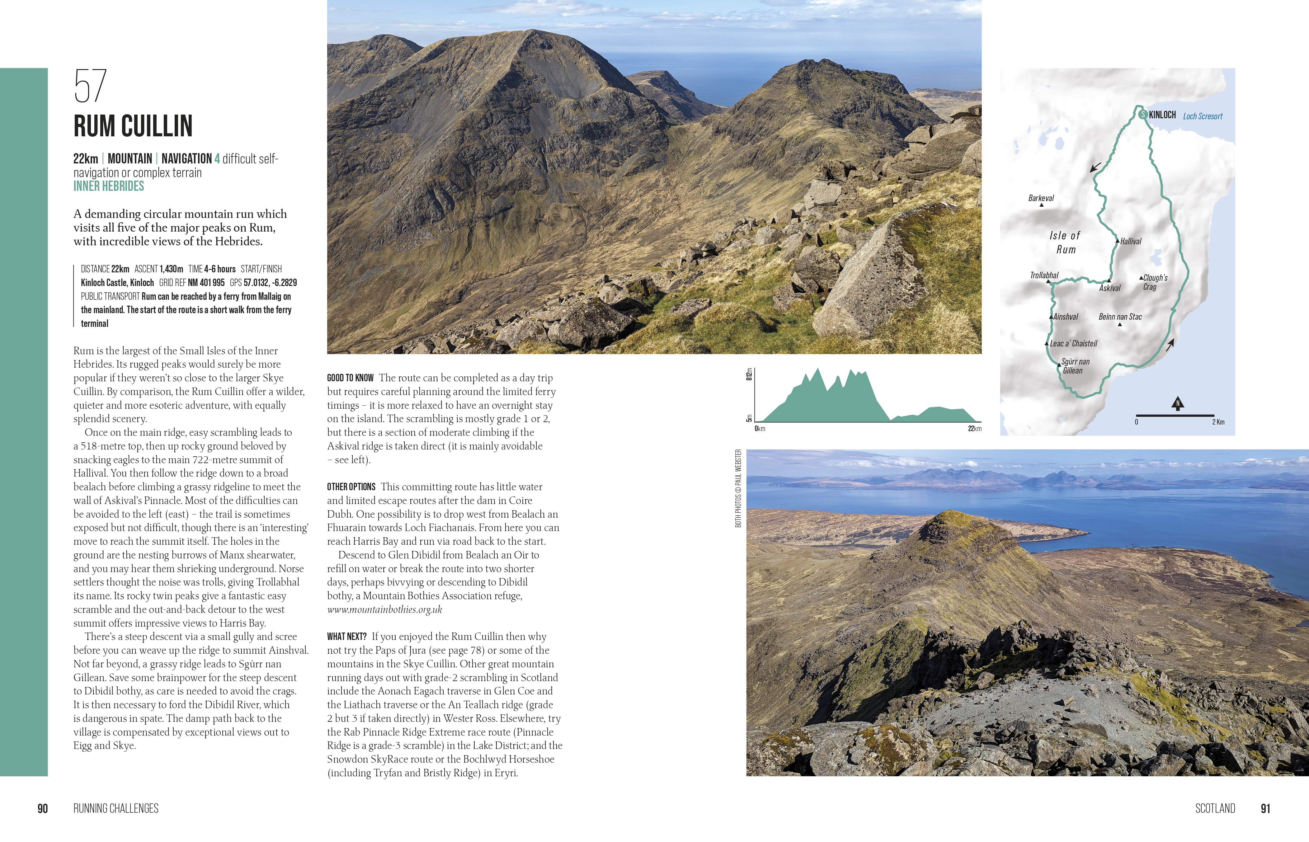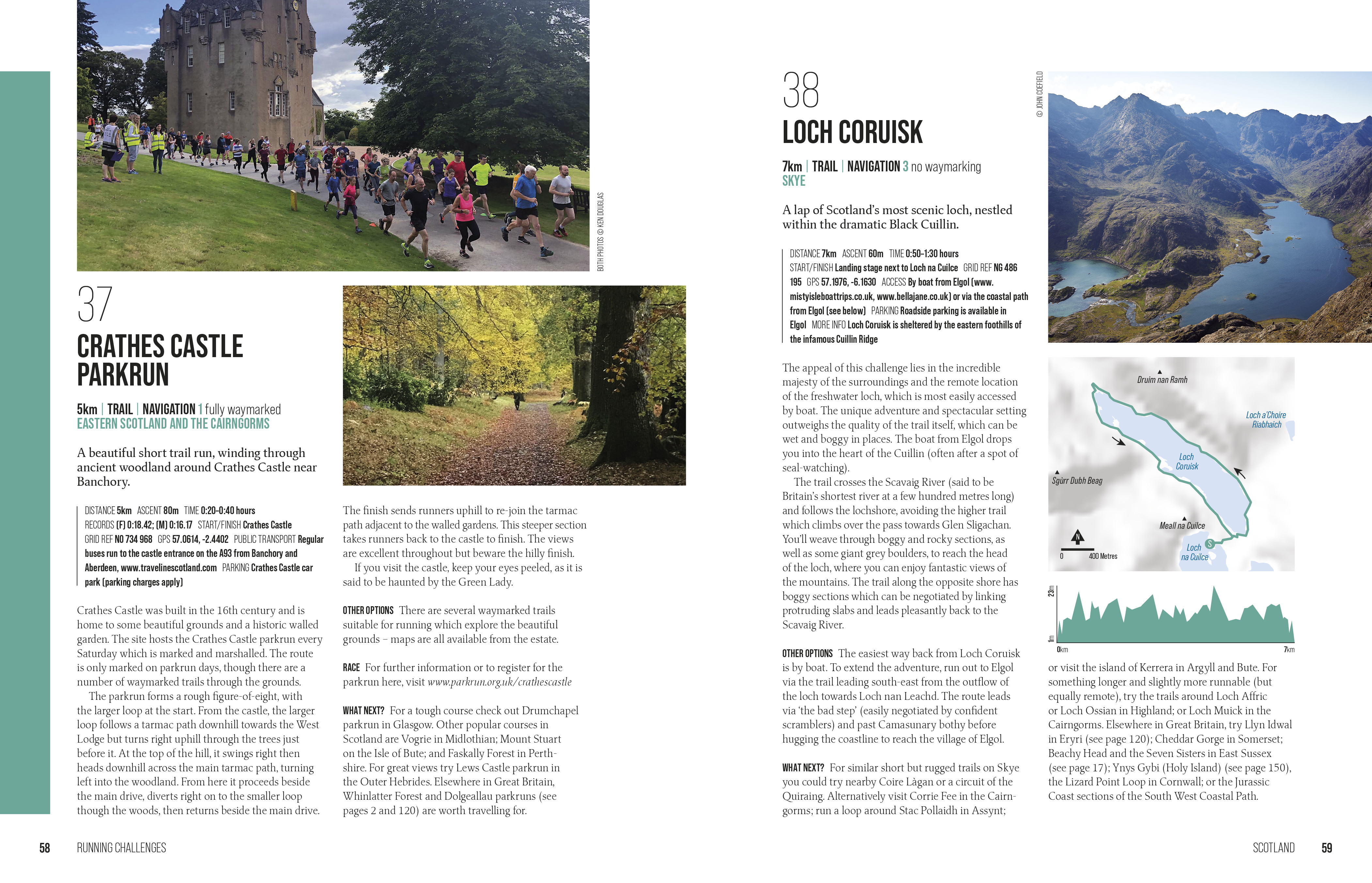 Each run has handy details to help with planning your adventure – start and finish points, distance and ascent, navigational difficulty, public transport, parking, route profile and overview map – along with inspirational text and stunning photography to give you a flavour of what the run is like. Other options nearby are included, along with suggestions for other similar challenges throughout Great Britain.