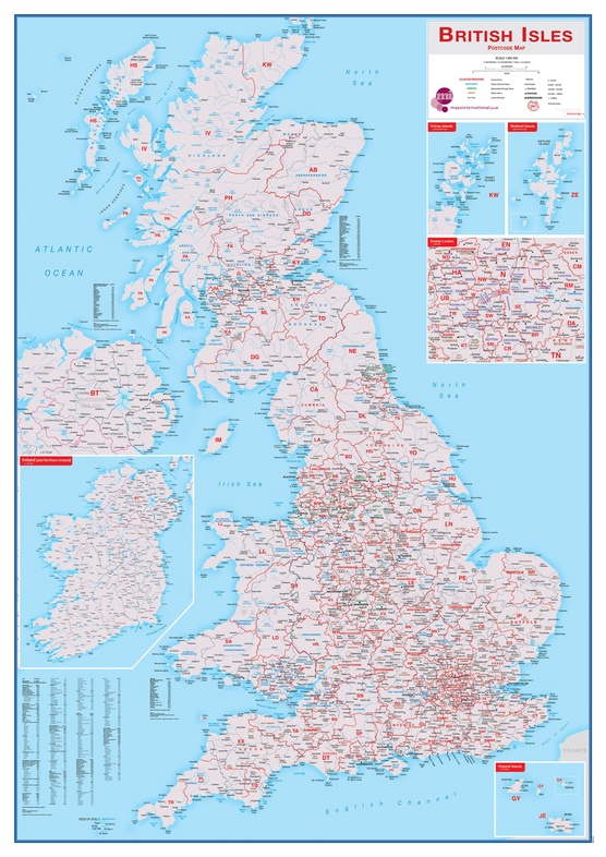 Gebruik van de kaart: de postcodes van de British Eilanden zijn dagelijks nodig en deze kaart is een geweldig naslagwerk. Deze kaart toont elk postcodegebied