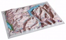 Een 3D topografische kaart met gekleurde grafisch reliëf - en heuvelarcering op basis van topografische OS kaarten.