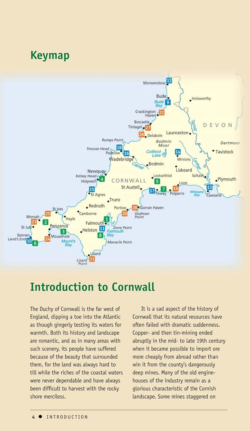 Cornwall's coastal path gives access to many of Britain's finest marine landscapes, and a great many of the walks in this guide utilise sections of the path, which is maintained to a high standard. Two walks, starting at Polkerris and Little Petherick respectively, follow parts of the Saints' Way, which crosses Cornwall from coast to coast on a route pioneered by the early Christian missionaries. Other routes take in the ever-popular Land's End, romantic Prussia Cove (an old smugglers' haunt), and Bodmin Moor, a landscape that has altered little since the Iron Age, nearly 3,000 years ago.