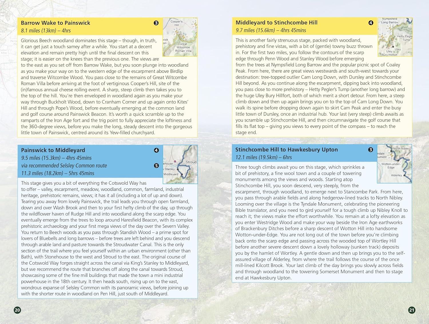 The beauty of the Cotswolds is in no way lessened by its popularity, and the Cotswold Way leads you through the best of this most comforting of regions. The trail follows a snaking path along the western edge of the hills for 102 miles, from the pristine market town of Chipping Campden to the stately city of Bath – through deep-cut valleys and over beech-clad hills, across open pasture and past ancient barrows. You are never far from a view of the Severn Vale and the Welsh hills, or from a welcoming pub in a village of amber-hued stone. * the latest 1:25,000 OS mapping, with the trail highlighted so you can see it at a glance * information nuggets throughout bring the countryside alive – past and present, seen and unseen * a handy slip-into-your-pocket design, with cover flaps to mark your page * planning info – practical help to plan your hike, including an overview map of the whole trail * stage descriptors, giving you an overview of what to expect on each leg * accommodation ideas – B&Bs, hotels, pubs and campsites close to the path * links to inspirational resources – websites and books to help you dive deeper * flora & fauna – pictorial guides to nature’s riches along the trail