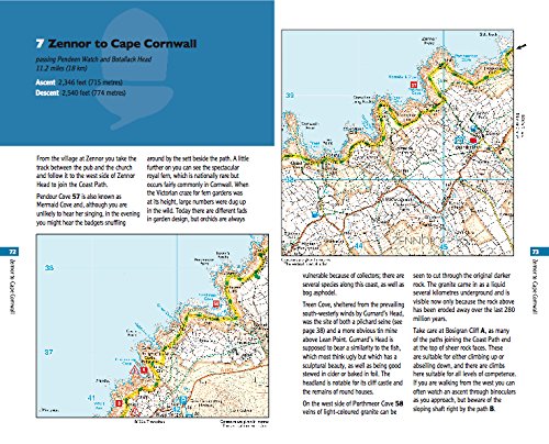 Goede beschrijving van een deel van het beroemde South West Coast path in Cornwall. Men heeft gebruik gemaakt van zeer gedetailleerde kaarten van Ordnance Survey.