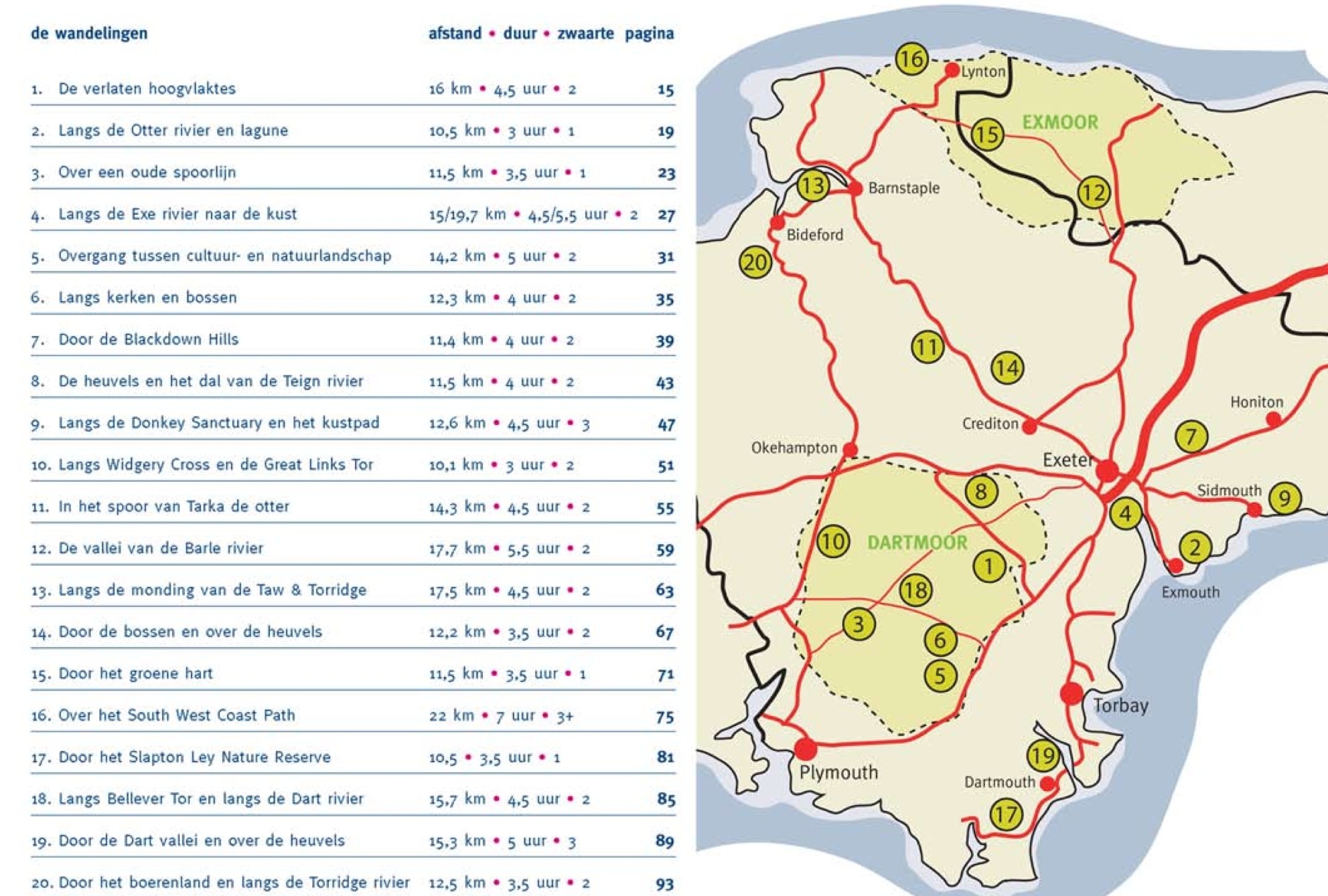 In deze wandelgids hebben we twintig wandelingen beschreven die een dwarsdoorsnede geven van wat Devon allemaal te bieden heeft. Er zijn korte, goed begaanbare routes bij, maar ook pittige en uitdagende tochten voor de meer getrainde wandelaar. Zo vindt iedereen wel een tocht die past bij zijn of haar wensen.