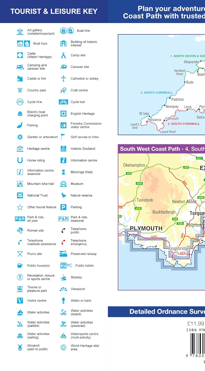 AZ heeft de meest gedetailleerde wandelkaarten van delen van het South West Coast Path gebundeld in een atlasje. Daardoor is het heel handig qua formaat. De kaarten zelf zijn perfect voor het wandelen. Schaal 1:25.000