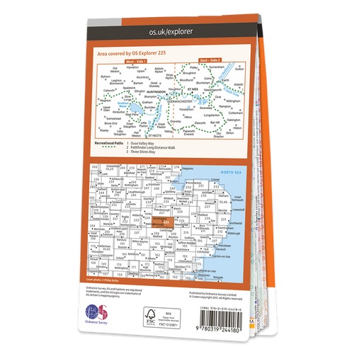 • Wandelkaart - Topografische kaart 225 OS Explorer Map | Active Huntingdon / St Ives | Ordnance Survey