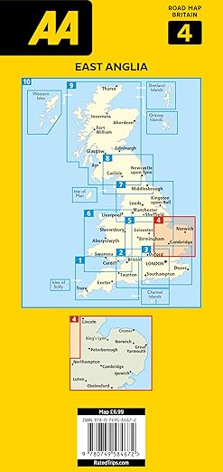 - Wegenkaart - landkaart 4 Road Map Britain East Anglia | AA Publishing