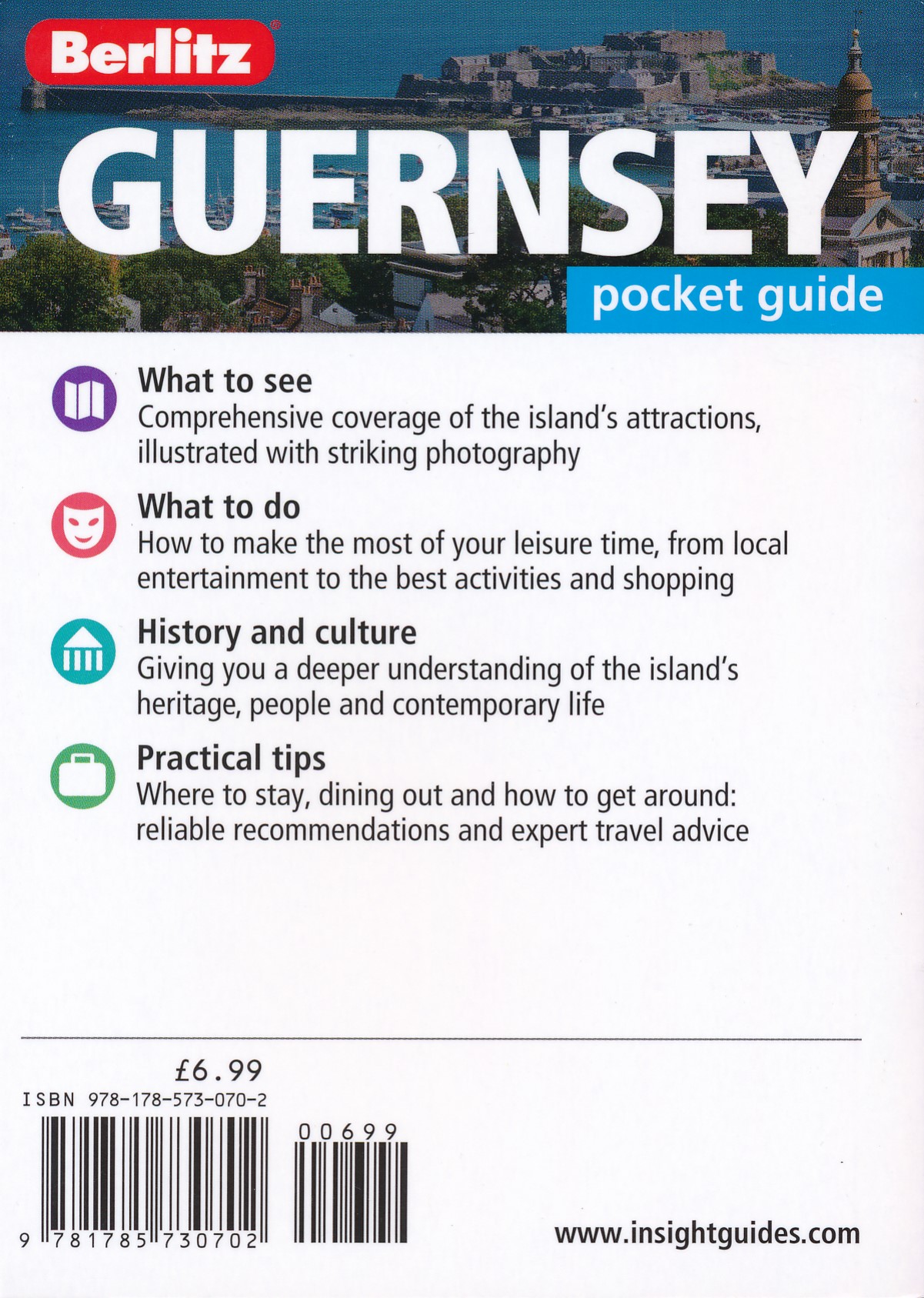 Guernsey Pocket Guide Berlitz is een handzaam engelstalige reisgids met bezienswaardigheden, kaartjes, hotels en restaurants