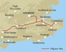 Uitstekende wandelgids van de Pilgrims' Way, waarbij naast alle noodzakelijke informatie ook gebruik gemaakt wordt van de echte topografische kaart.