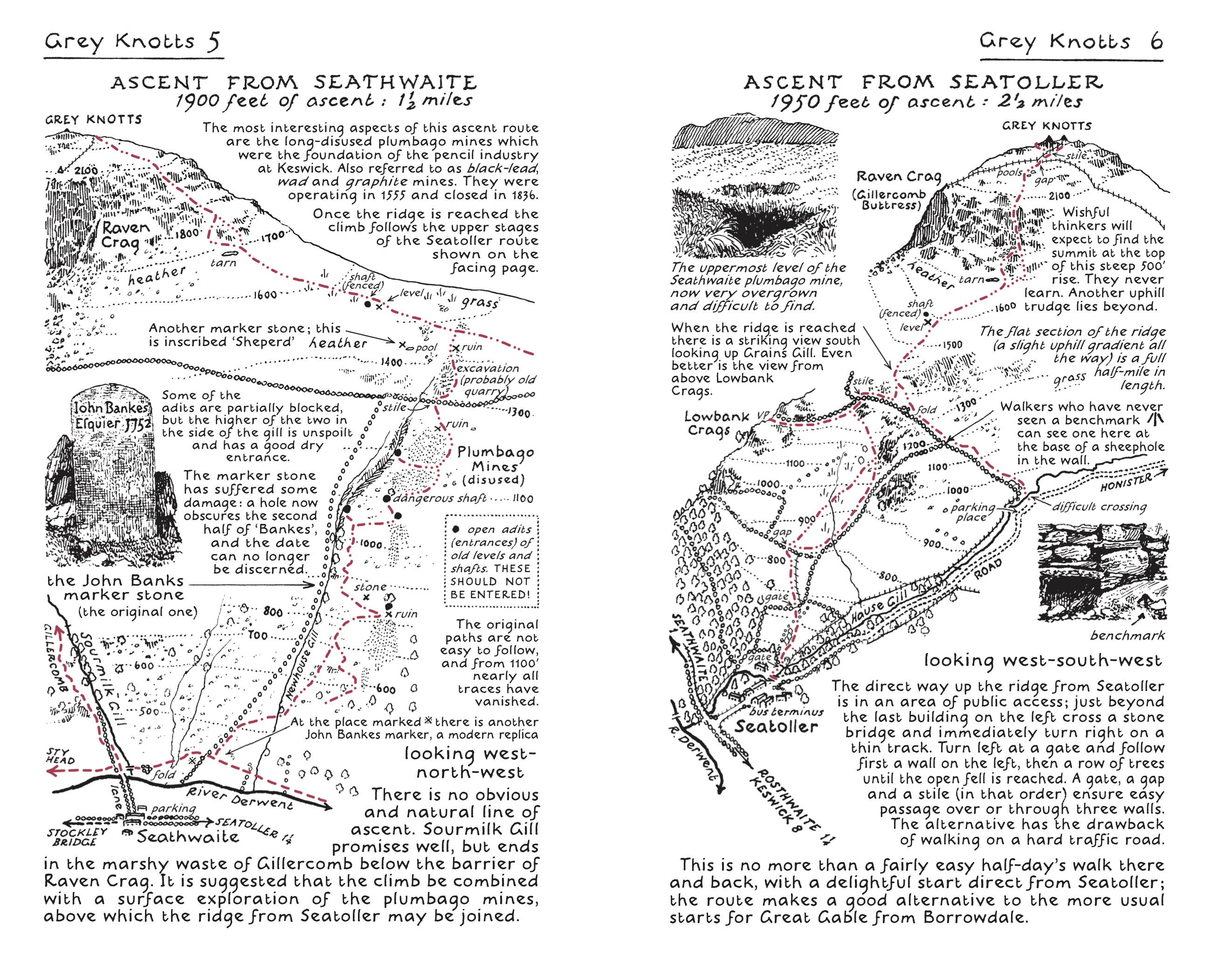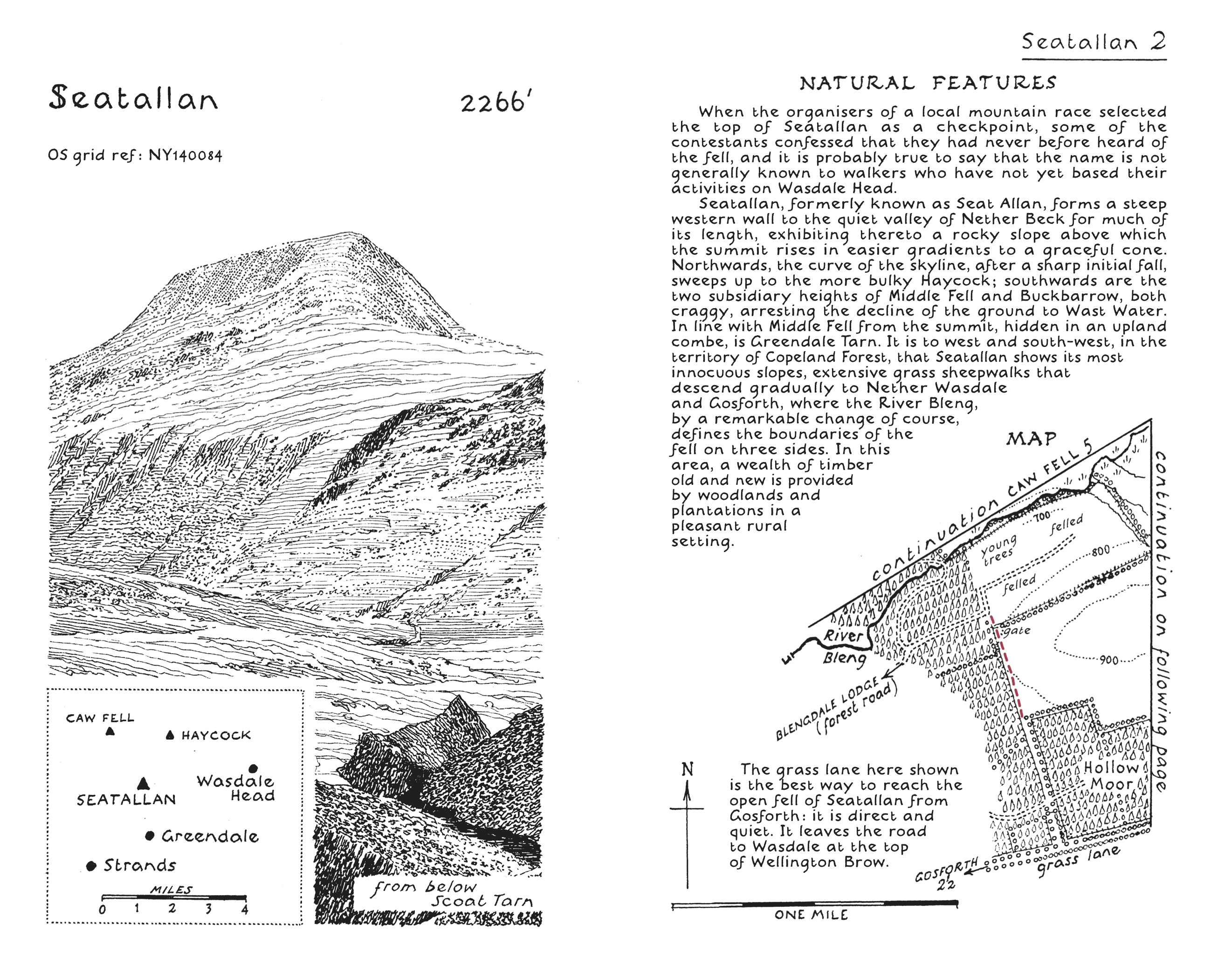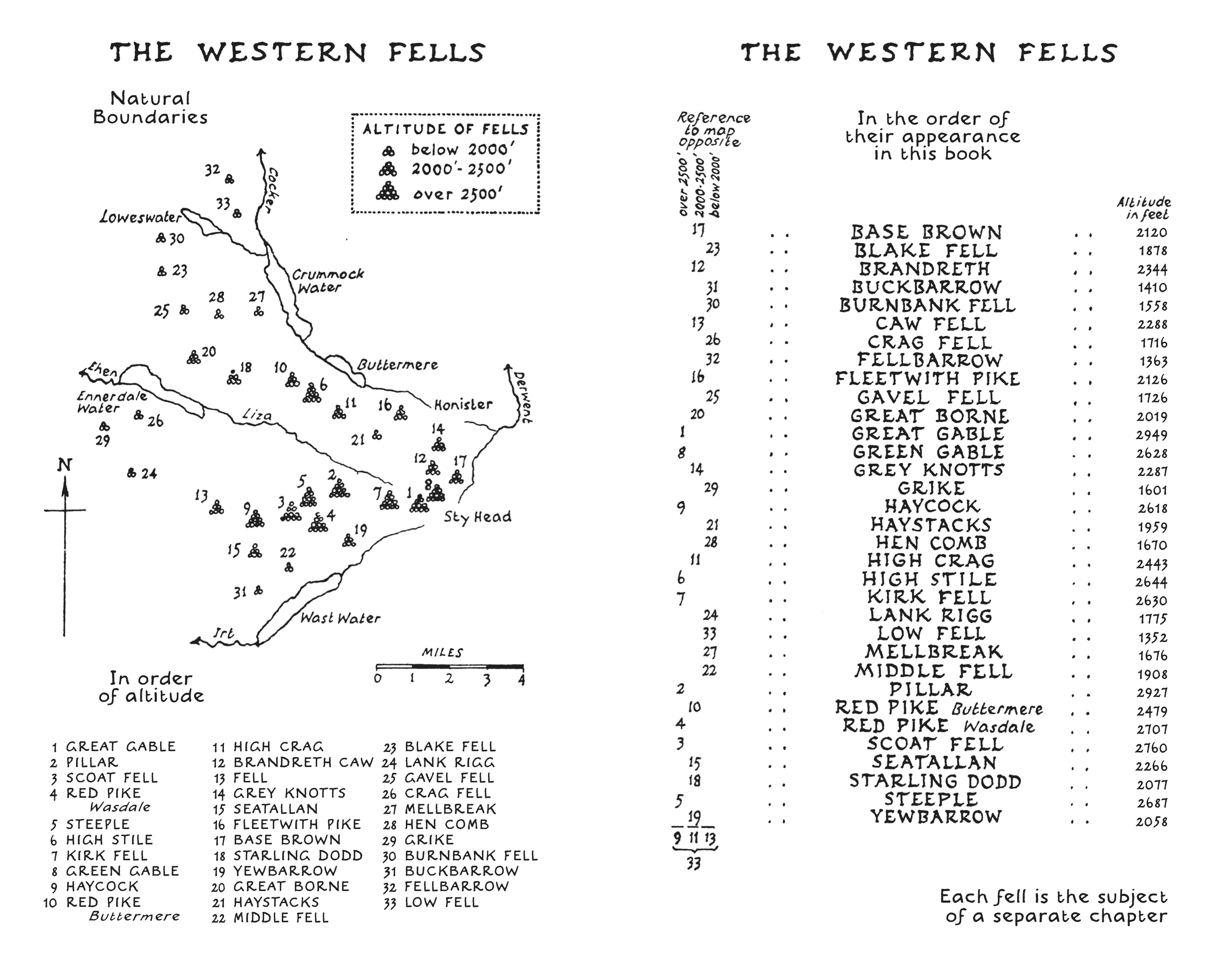 One name above all others has become associated with walking in the Lake District: A. Wainwright, whose seven-volume Pictorial Guide to the Lakeland Fells, first published in 1955–66, has become the definitive guidebook. Wainwright’s meticulously hand-drawn maps, diagrams and drawings take you up the 214 principal hills and mountains of the Lake District, describing the main routes of ascent from different starting points, as well as lesser-known variants, showing the summit viewpoint panoramas and the ridge routes that can be made to create longer walks. The Western Fells, Book Seven of Wainwright’s Walking Guide, covers Great Gable and the High Stile and Pillar ranges, overlooking the Ennerdale, Cocker and Wasdale valleys.