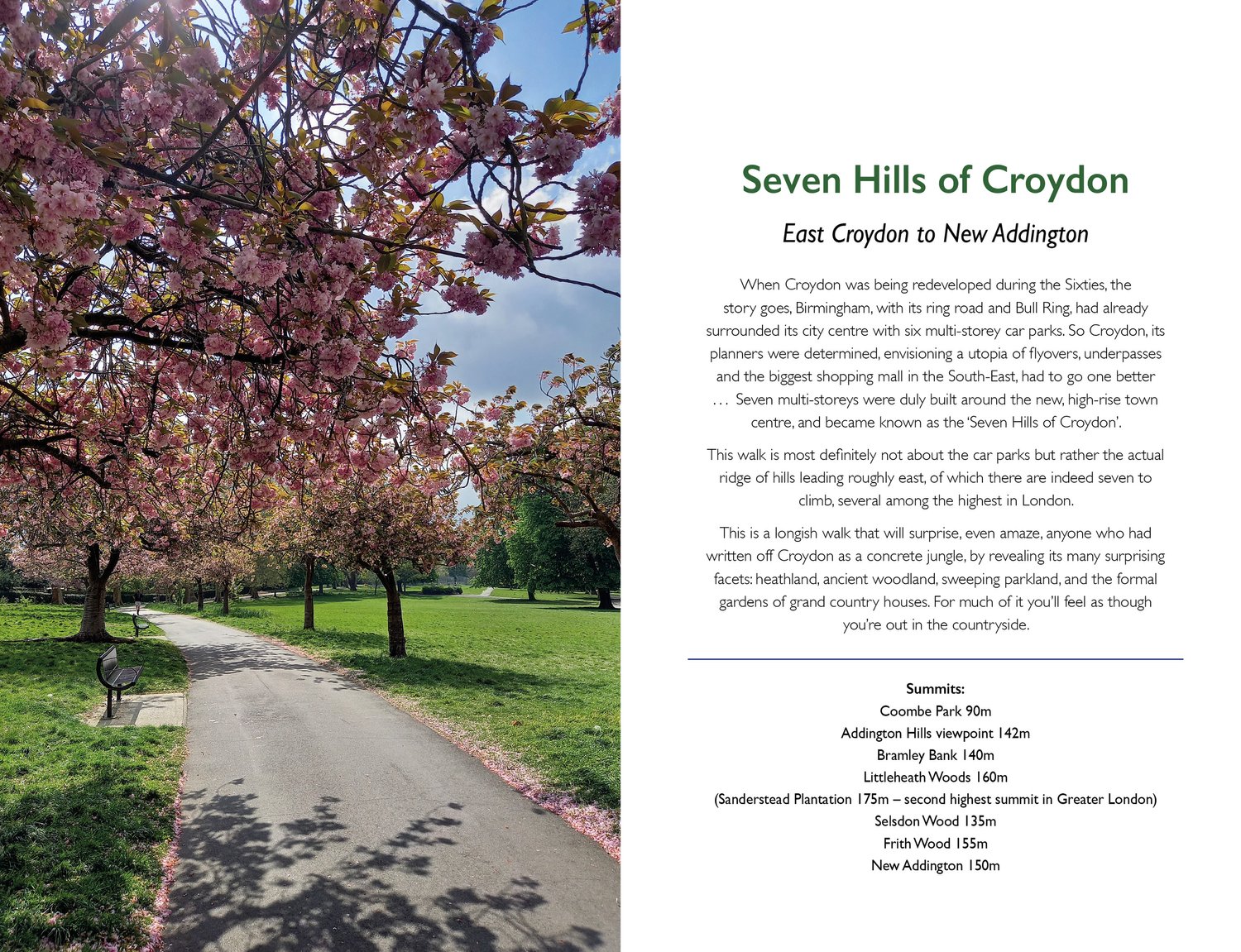 Here are the Seven Hills of Croydon; the Sewardstone Hills north of Chingford; the string of former telegraph stations stretching from New Cross Gate across to Forest Hill, as well as cherished ascents like Hampstead Heath, Greenwich Park and Richmond Hill. A Base Camp for refreshments is given for every expedition.
