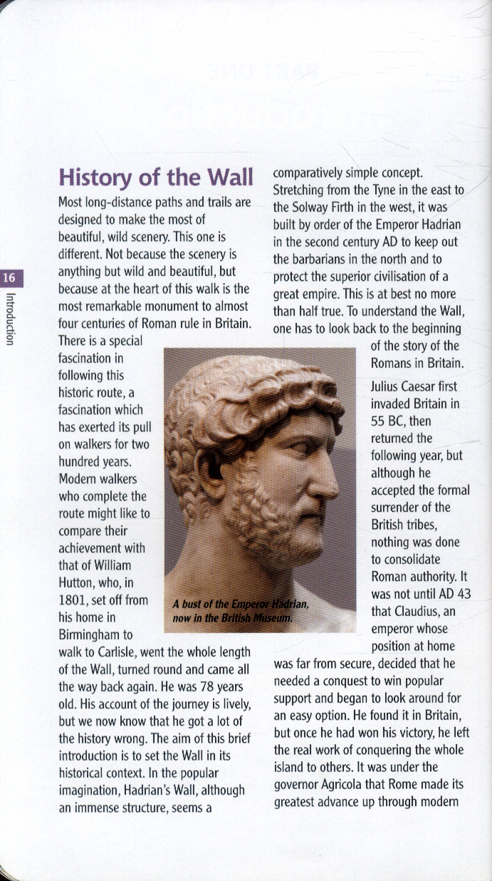Since it opened in 2003 Hadrian's Wall Path has become one of Britain's most popular long-distance paths. Its 84 miles are a convenient week's walking, shadowing for the most part the historic line of Hadrian's Wall in its spectacular progress across the superbly wild landscape of the north of England. Starting in what used to be Tyneside's shipbuilding heart, and joining Newcastle in the east with Carlisle in the west, it takes you via the extraordinary Roman forts of Vindolanda and Housesteads, close to handsome towns like Hexham and Corbridge, to finish on the lonely shores of the Solway Firth with views of Scotland.