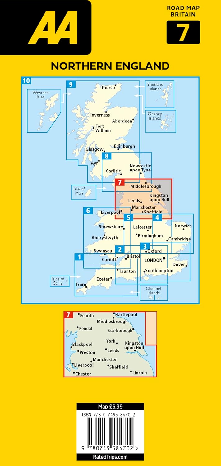 - Wegenkaart - landkaart 7 Road Map Britain Engeland Noord | AA Publishing