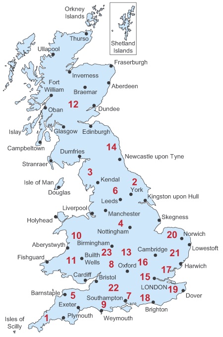 Carlisle, Workington, Whitehaven, Barrow-in-Furness, Penrith, Windermere, Kendal, Ambleside, Cockermouth, Maryport, Keswick, Patterdale, Coniston, St. Bees, Silloth, Annan, Gretna, Etheral, Longtown, Langwathby, Alston, Brough, Appleby-in-Westmorland, Kirkby Stephen, Kirkby Lonsdale, Sedbergh, Carnforth, Morecambe, Millom, Broughton-in-Furness, Ravenglass.