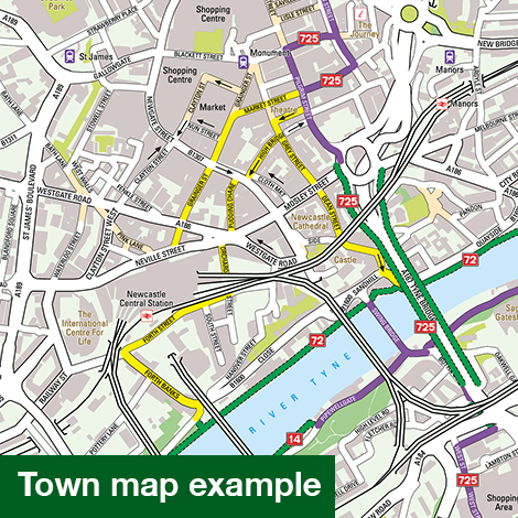 Deze kaart geeft de National Cycle Network en de aanbevolen fietsroutes door de Severn & Thames regio. Alle fietsroutes in betreffend gebied staan keurig ingetekend, dus ook die van het National Cycle Network. Ook veel praktisch zaken als bezienswaardigheden, stations, supermarkten, fietsenmakers, pubs, hotels etc. Bovendien zijn er vijf dagfietstochten op de kaart vermeld.