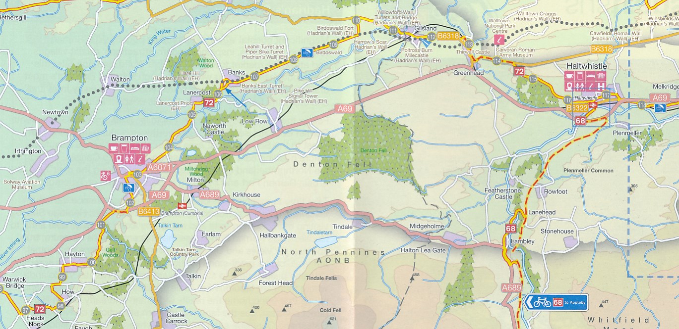 Hadrian's Cycleway is a 174 mile coast to coast route crossing the north of England between Cumbria and Northumberland.