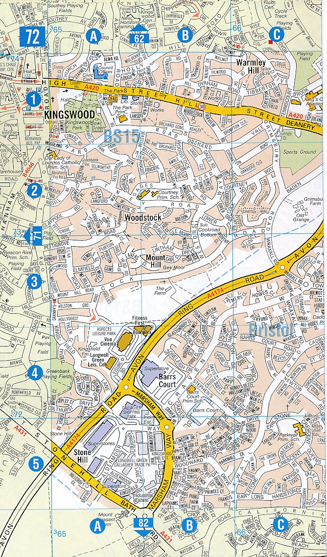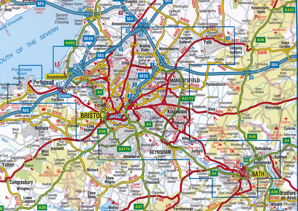 Handzame gedetailleerde stratenatlas van Bristol, Bath en omgeving.