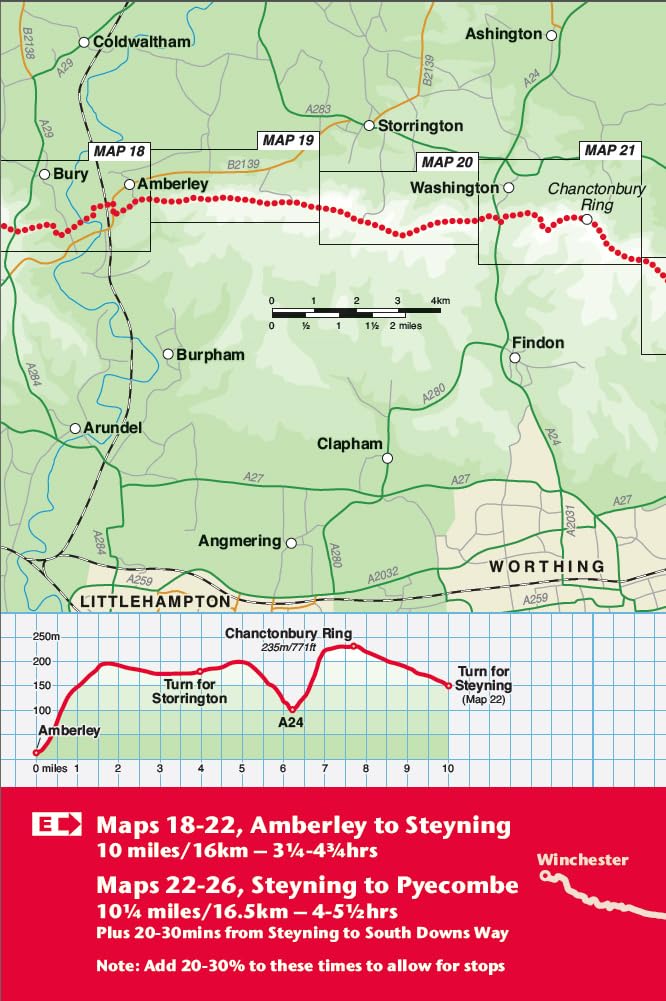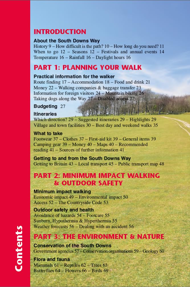 The South Downs Way is a 100-mile footpath which follows the line of chalk hills stretching from Winchester to Eastbourne. Walking the length of the Downs is the best way to experience this beautiful landscape with its mixture of rolling hills, steep hanging woodland and windswept fields. You'll also pass through picture-postcard villages with welcoming pubs, thatched cottages and country gardens. 1. Unique mapping features - In many walking guides the reader has to read a route description then try to relate it to the map. Our guides are easier to use because walking directions, tricky junctions, places to stay and eat, points of interest and walking times are all written onto the maps themselves in the places to which they apply.