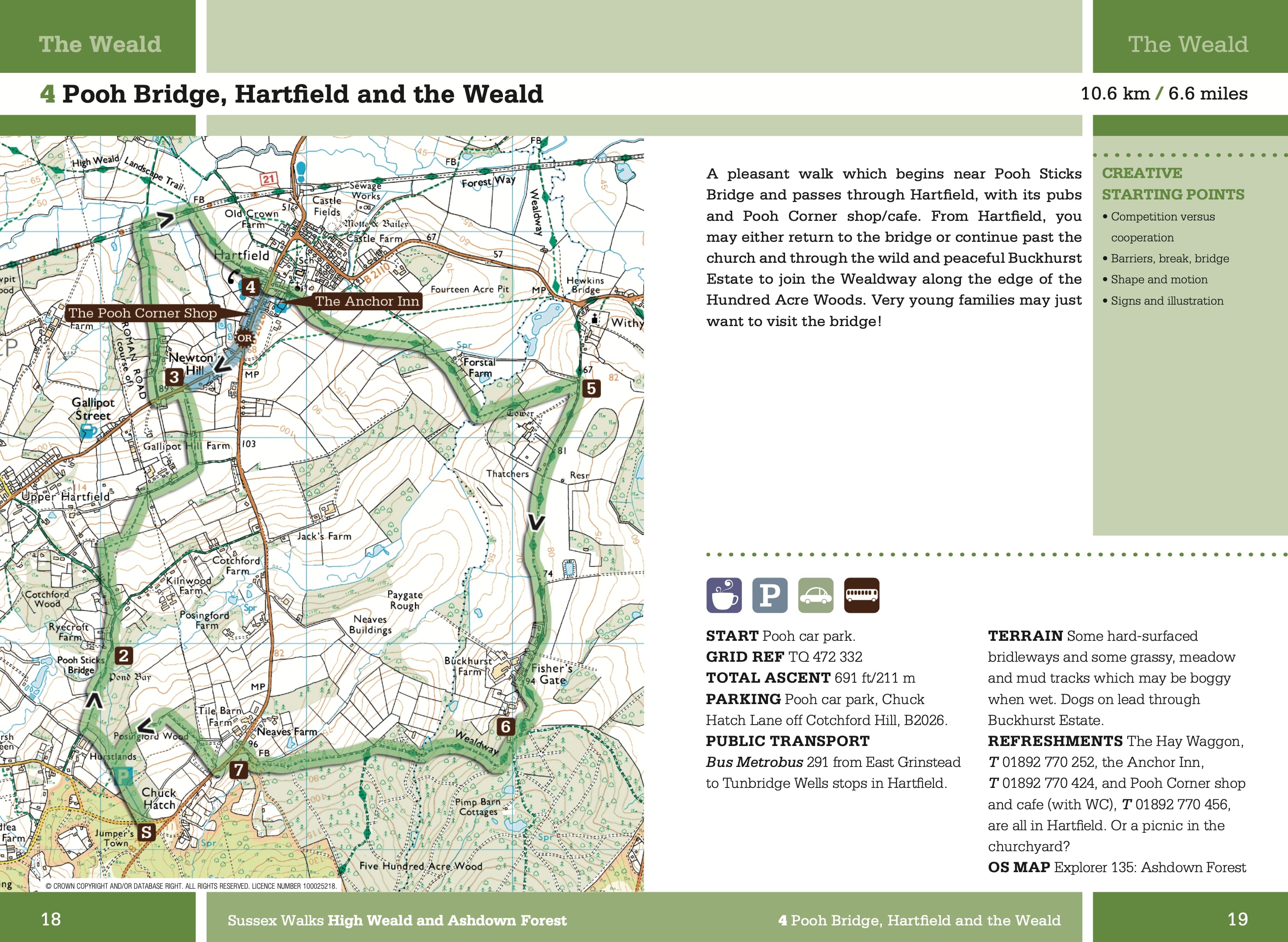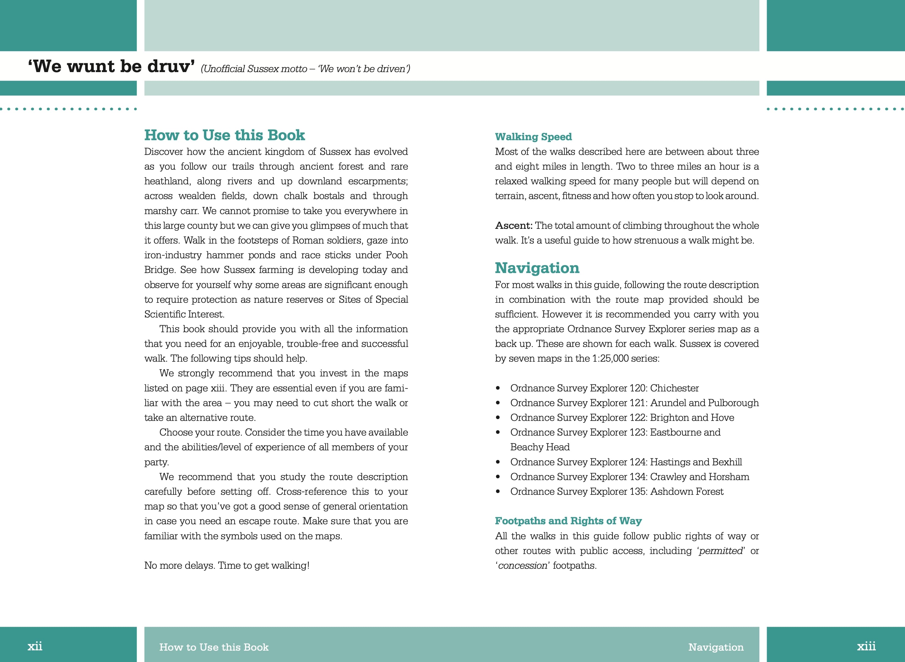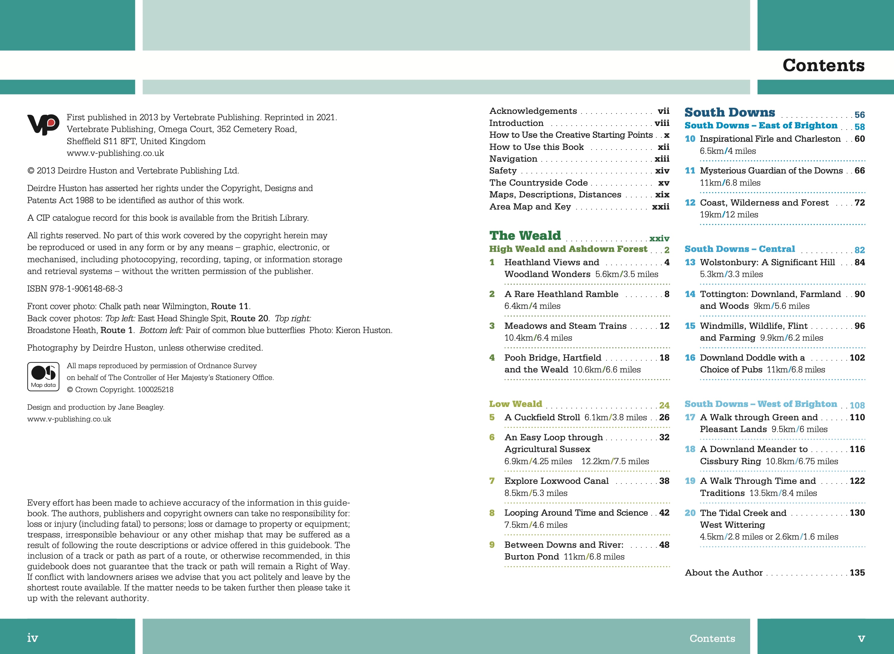 20 walks exploring the Weald and the South DownsSussex Walks is a collection of 20 circular walks, between 3.5 and 12 miles (5km and 19km) in length that explore the length and breadth of the county of Sussex. Written by local author Deirdre Huston, the walks feature Ordnance Survey 1:25,000 maps, easy-to-follow directions, and information on local history, wildlife, refreshments and terrain.