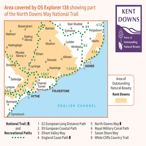 - Wandelkaart - Topografische kaart 138 OS Explorer Map Dover, Folkstone, Hythe | Ordnance Survey