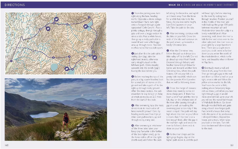 Wild Swimming Walks Eryri Snowdonia leads you on 28 adventures in the soaring landscape of Eryri National Park in north Wales. Swim through secret valleys and find hidden waterfalls, exploring high lakes and woodland gorges. Complete with photos, maps and practical guidance, rich in local history and stories, this book will appeal to wild swimmers, family explorers, nature lovers and walkers alike.