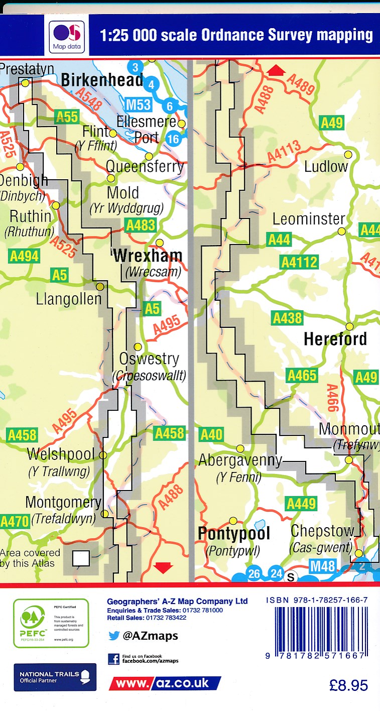 AZ heeft de meest gedetailleerde wandelkaarten van het Offa's Dyke Path gebundeld in een atlasje. Daardoor is het heel handig qua formaat. De kaarten zelf zijn perfect voor het wandelen. Schaal 1:25.000