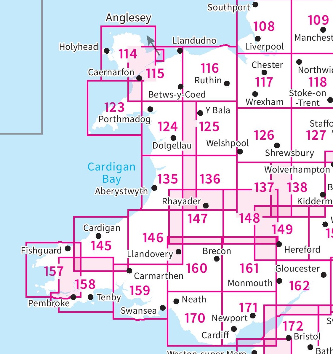 Overzicht wandelkaarten / topografische kaarten Wales Ordnance Survey 1:50.000