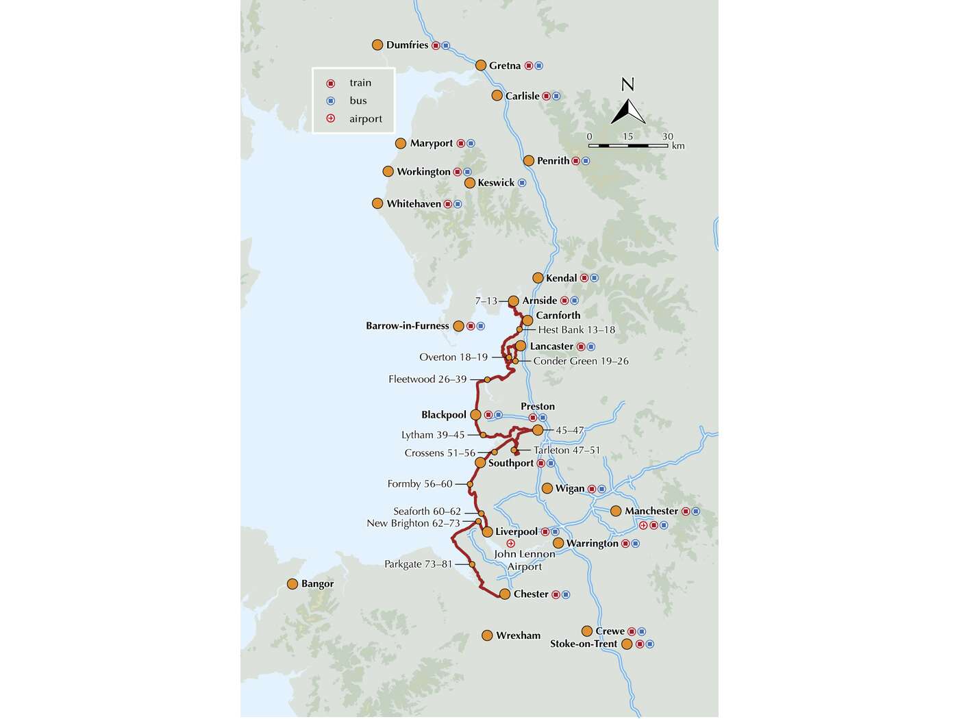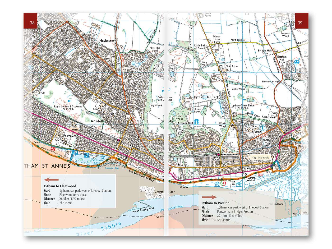 This map booklet to the Lancashire and Merseyside section of the England Coast Path contains detailed mapping for walking the route in either direction. With easy access at many points along the way, the Lancashire/Merseyside section can be enjoyed as a trek of around 12 days or in shorter sections.Full route shown on 1:25,000 OS maps