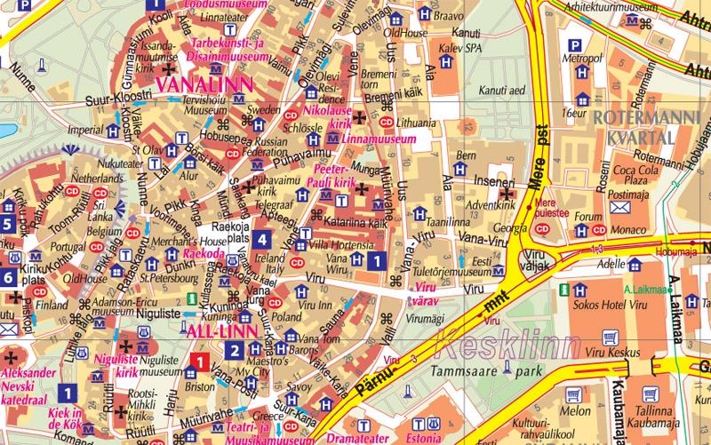 Geplastificeerde stadsplattegrond van Tallinn. Met stratenindex en overzicht voor openbaar vervoer. Inclusief engelstalig overzicht met informatie over de belangrijkste bezienswaardigheden.