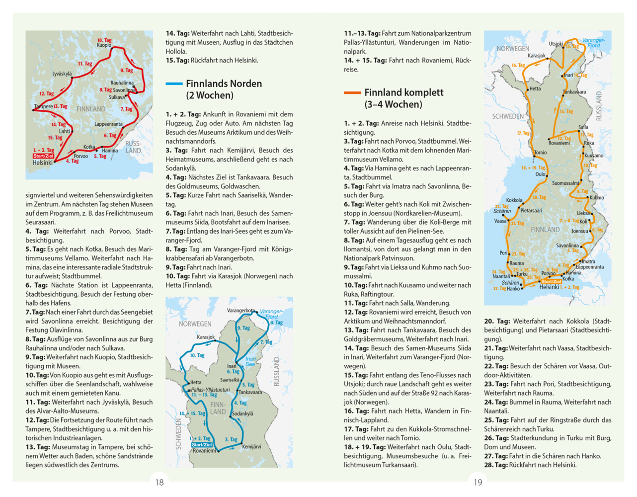 Wissenswertes über Finnland Wissenswertes für die Reise Kulinarisches Lexikon Sprachführer Helsinki und Südfinnland Westfinnland Finnische Seenplatte Kainuu und Nordkarelien Lappland 30 Karten und Pläne plus eine separate Finnland-Reisekarte im Maßstab 1:850.000.