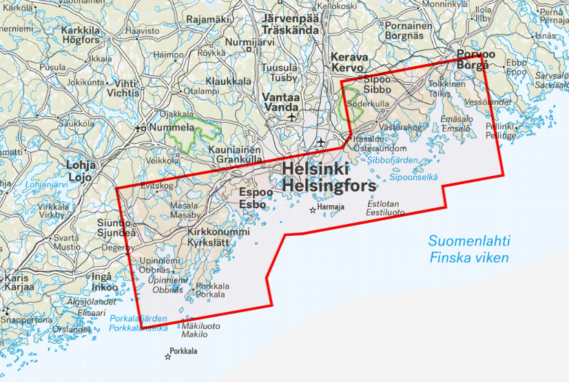 Suomenlinna, Vallisaari, Sipooon saaristo, Porkkalanniemi, Suvisaaristo, Espoon rantaraitti