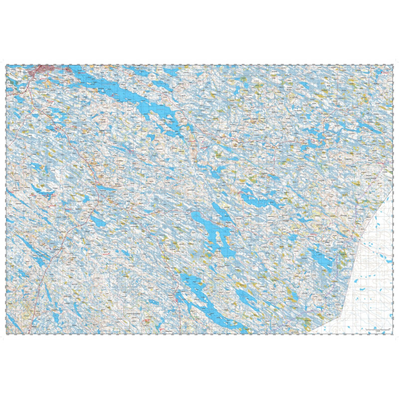 De oostelijke delen van Kuhmo op een waterdichte kaartTopokaarten zijn gevouwen terreinkaarten van Finland, gedrukt op waterbestendig en scheurbestendig materiaal. De kaarten zijn bestand tegen intensief gebruik en vouwen en slijten niet. het gebied bestrijkt het oostelijke deel van de stad Kuhmo in Kainuu. De wandelbestemmingen op de kaart zijn Elimyssalo, Iso-Palonen–Maariansärkät, Kilpelänkangas, Jonkerinsalo, Jämäsvaara en Lentua. De nabijgelegen gebieden van het centrum van Kuhmo en de waterwegen die populair zijn bij kajakkers zijn ook inbegrepen.