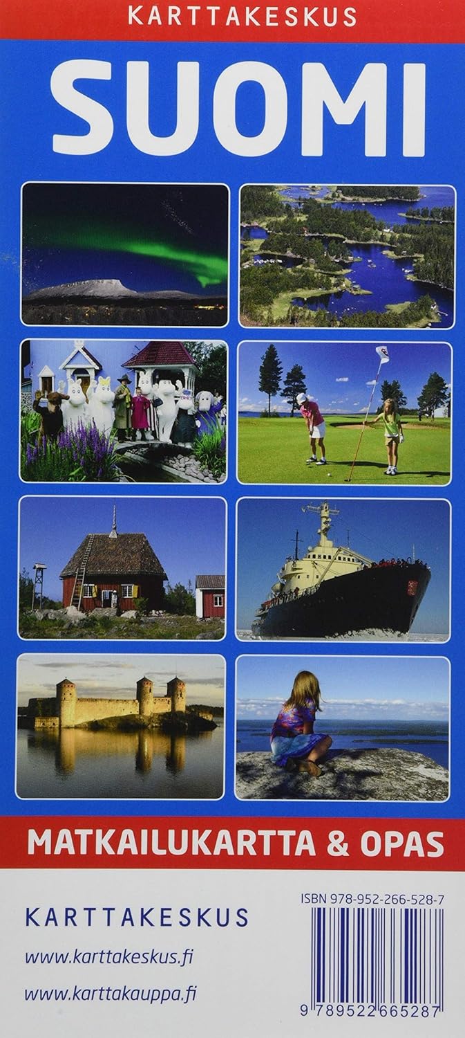 Finnish languageCombined guide and map covering the whole Finland. There are 90 beautiful sights to visit all over Finland.