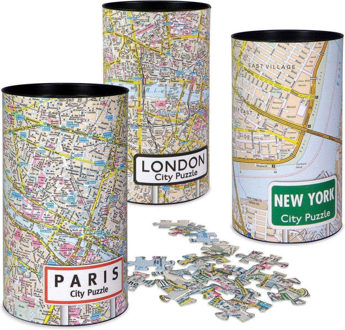 •De puzzel wordt gepresenteerd in een cilindervormige doos met een aantrekkelijk design bestaande uit een deel van het stadsplan