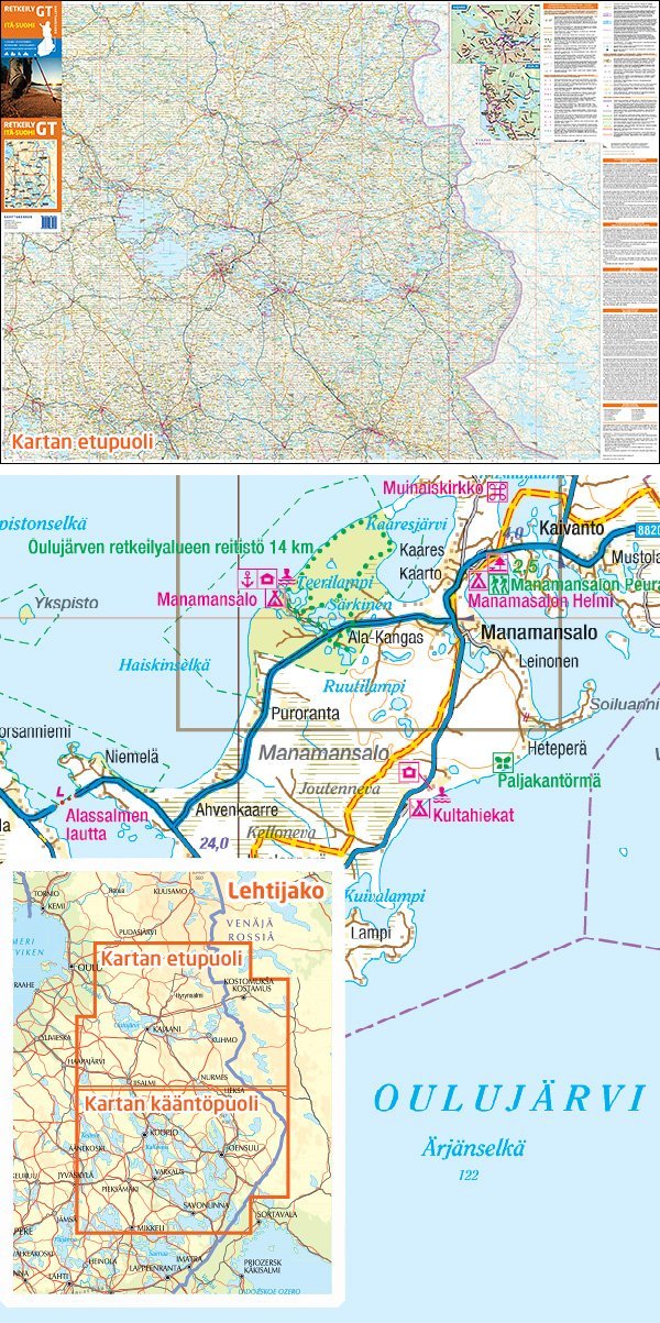 A map for trekking in Eastern FinlandGT Cycling- and Outdoor Map 1:250.000 / 1:400.000