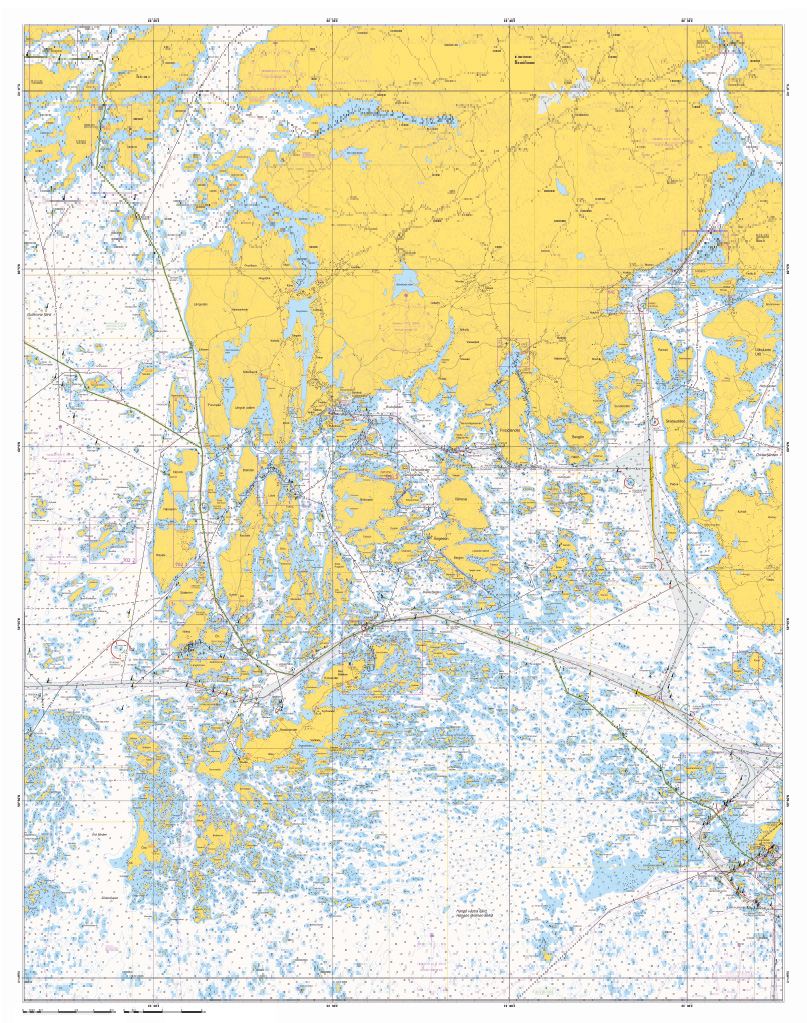•In land areas, the maps have been supplemented with the National Land Survey of Finland’s Topographic Database material.