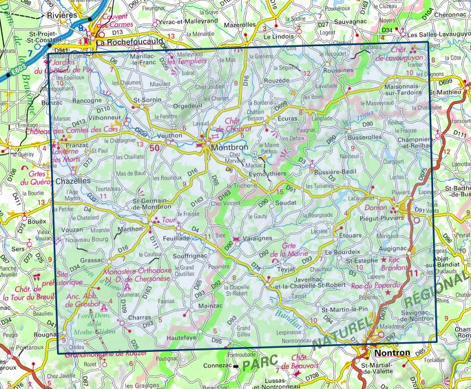 - Wandelkaart - Topografische kaart 1832 SB - Serie Bleue Montbron, Piégut-Pluviers | IGN - Institut Géographique National