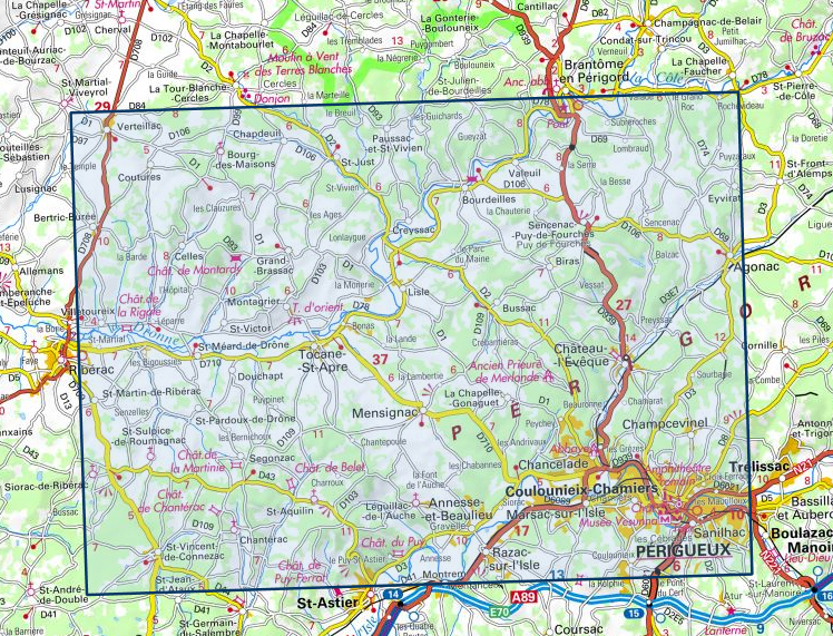 Topografische IGN 25.000 Dordogne - Périgueux - Bergerac - Brive la Gaillarde