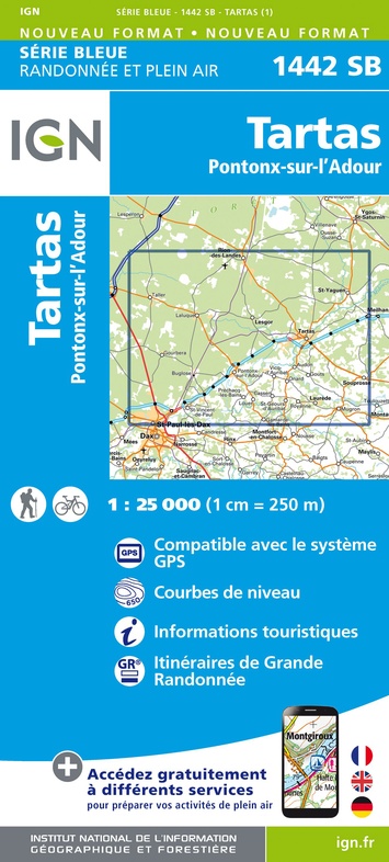 - Wandelkaart - Topografische kaart 1442 SB - Serie Bleue Tartas, Pontonx-sur-l'Adour | IGN - Institut Géographique National