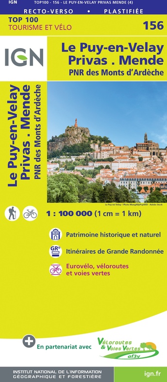 Fietskaart - Wegenkaart - landkaart 156 Le Puy en Velay - Privas - Mende | IGN - Institut Géographique National (9782758547686)