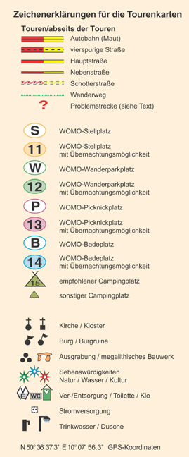 Bijzonder nuttige camperreisgids van een bepaald land of streek. Deze Duitstalige campergids beschrijft aan de hand van een aantal routes de mooiste gebieden. Naast een beschrijving van de routes zelf biedt de gids handige tips voor het reizen met de camper en een groot aantal officiële en niet-officiële standplaatsen. Deze camperplaatsen worden met GPS coordinaten duidelijk weergeven en zijn daardoor goed te vinden.