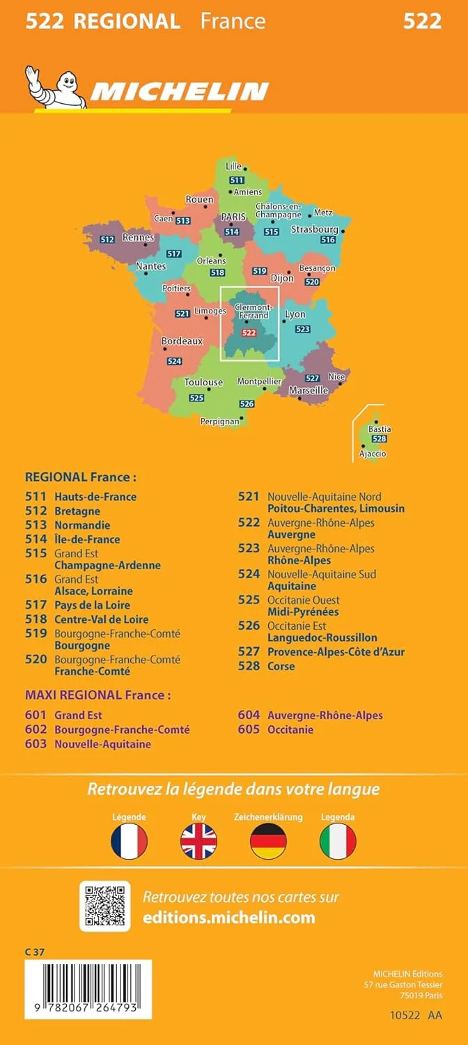 Wegenkaart - landkaart 522 Auvergne - Rhône-Alpes 2025 | Michelin (9782067264793)