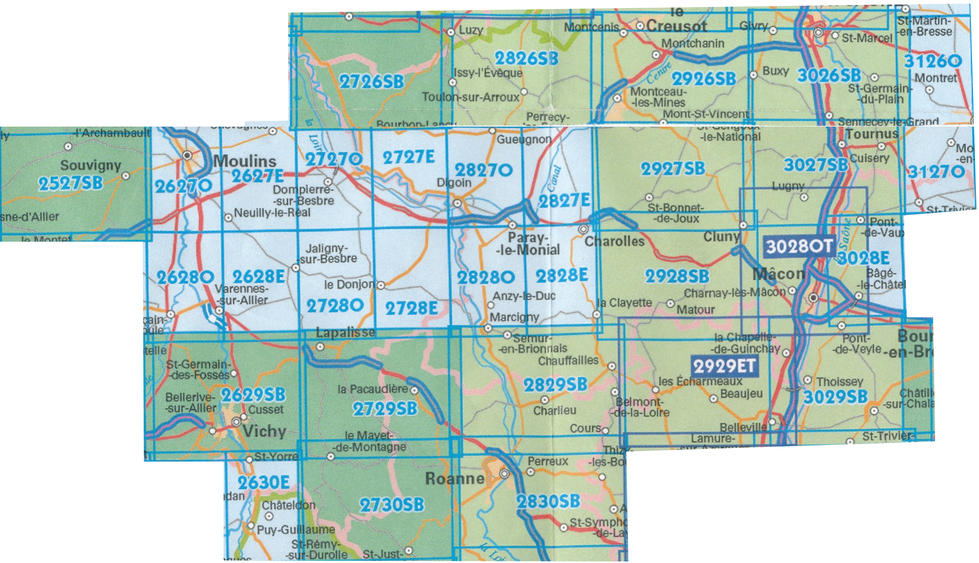 Topografische kaarten IGN 25.000 Bourgondië: ZUIDELIJK GEDEELTE