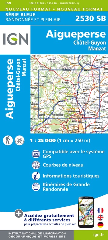 - Wandelkaart 2530 SB - Serie Bleue Aigueperse / Châtel-Guyon / Manzat | IGN - Institut Géographique National